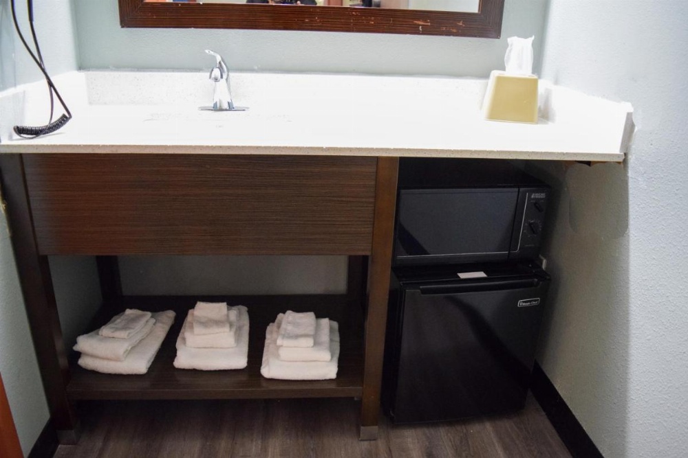 This room features a microwave, small refrigerator, and tea- and coffee-making facilities.